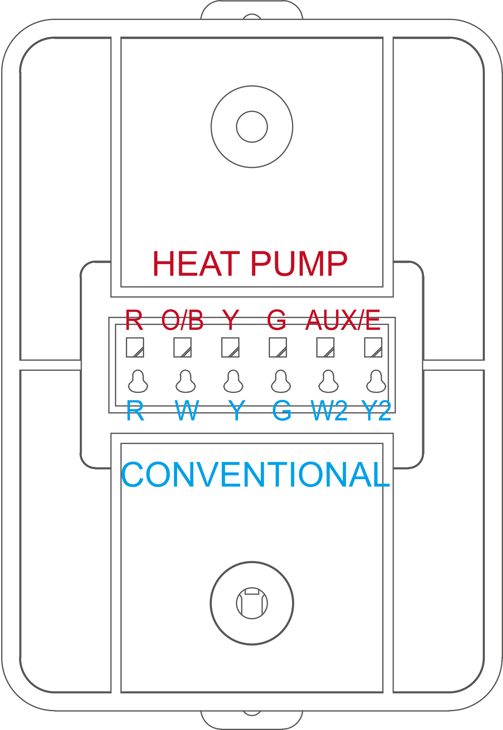 Then, insert each bare wire into Heat Pump Terminals (R, O/B, Y, G, AUX/E) or Conventional Terminals ( R, W, Y, G,